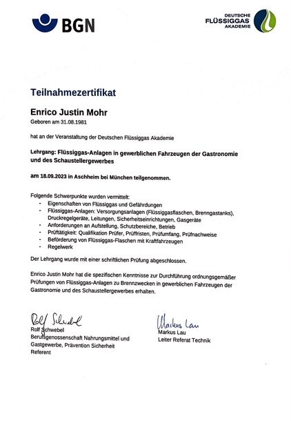 Gasprüfungen für alle ortsveränderlichen Gasgeräte: